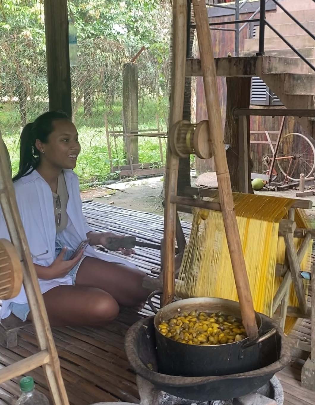 Sophie’s passion for textiles began in childhood on one of the many family trips to Cambodia, the country of her birth. It was there she first witnessed the art of traditional Khmer silk weaving, and her desire to work with textiles was born. During her studies at NCAD Sophie became acutely aware of the devastating effects of fast fashion on the lives of its workers and our planets ecosystem